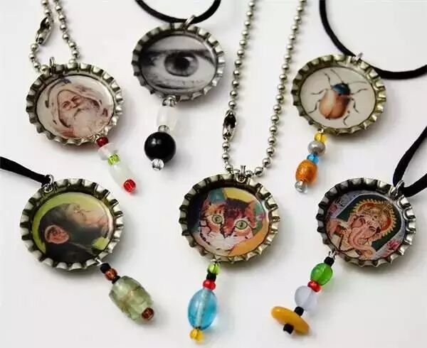 各种各样的瓶盖饰品,耳坠、项链、手环等等…