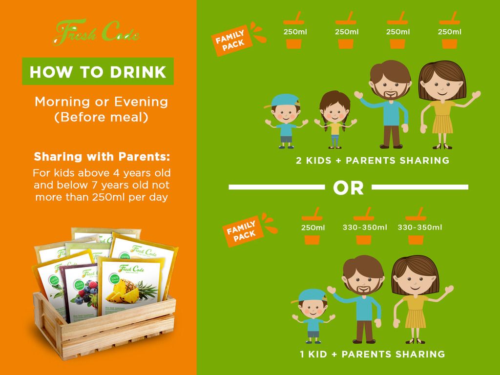 根据说明手册,9包果汁分三周喝,每周喝3款口味。小孩不能天天喝果汁,因此建议每隔一天让他们喝一杯 (250ml),剩下的爸爸妈妈分着喝,因为果汁一查开封就必须在两天内喝完。