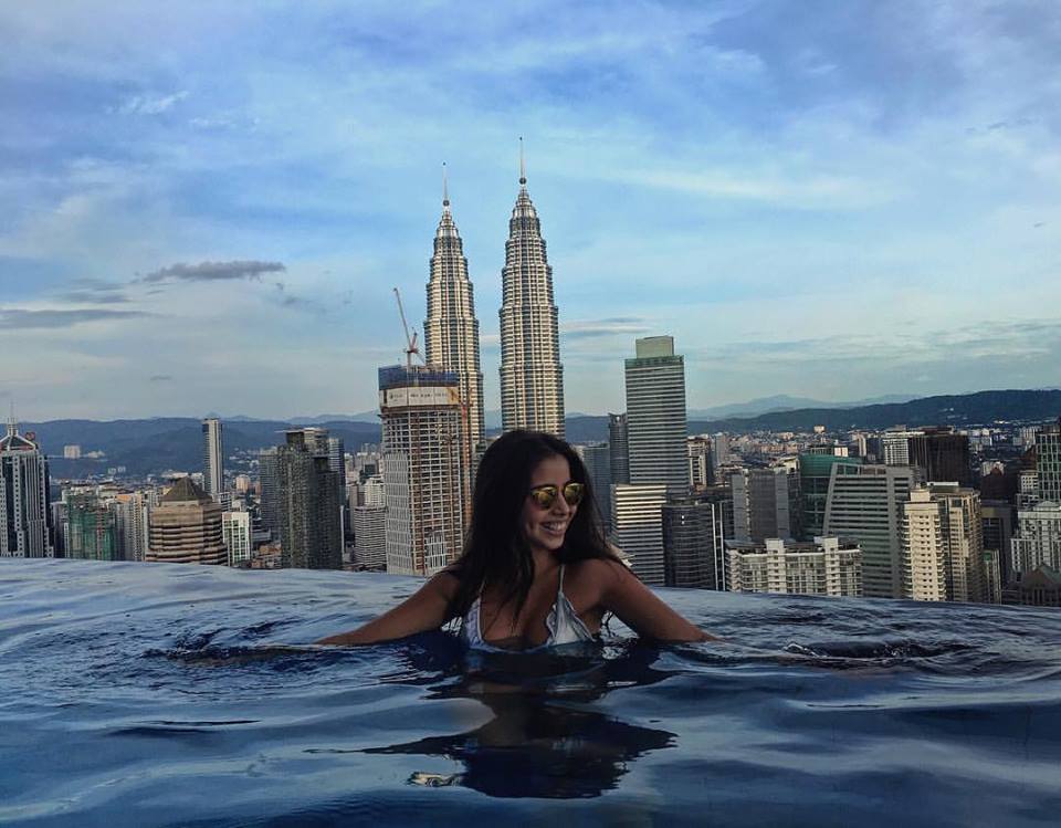 走到酒店的顶楼有个长方形开放式泳池,在这里能看见整个吉隆坡美景和双峰塔!晚上的时候,顶楼会开启蓝色的灯光,让整个环境看起来就像在海洋一样。所以最好是趁着晚上的时间来这里游泳,可以看到亮灯的KLCC更为漂亮!