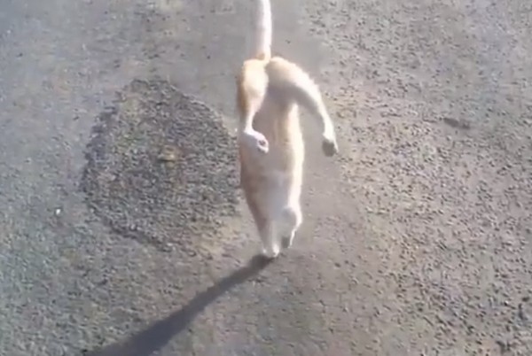 可能連很多人都無法完成的高難度動作,貓咪竟然做到了!路邊的一隻野貓先是倒立走路, 走到最後還來個劈腿,筋軟程度甚至超過人類,此項絕技在網路上更是引起不小的迴響。