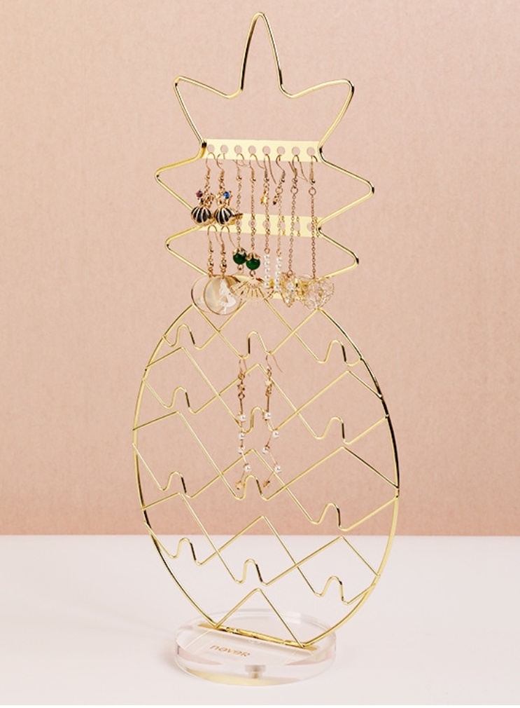 这个是收藏首饰和小饰品超级法宝呢!尤其是在于收藏手链和手链,有个小铁架,简直是方便多了,而且也不担心会弄坏。最近也可以找到专门收藏耳环的亚克力小架子,非常方便,摆在梳妆台上也很好看呢!