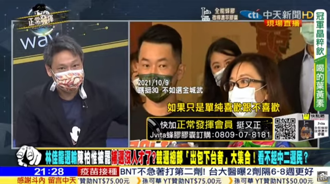 另外在疫苗引近部分,泰國方面剛運來一批59.4萬劑,即將於11月底到期的疫苗,對此指揮中心莊人祥表示,是因為疫苗供應仍不穩定,遭台北市長柯文哲稱:智商是不是只有70,沒想到陳時中卻回應,人不是只有智商而已。對此台北市議員侯漢廷表示,是不是陳時中已經不爽莊人祥很久了,「人不是只有智商」這樣的回答,不就是告訴大家,你也認為莊人祥他智商真的只有70。