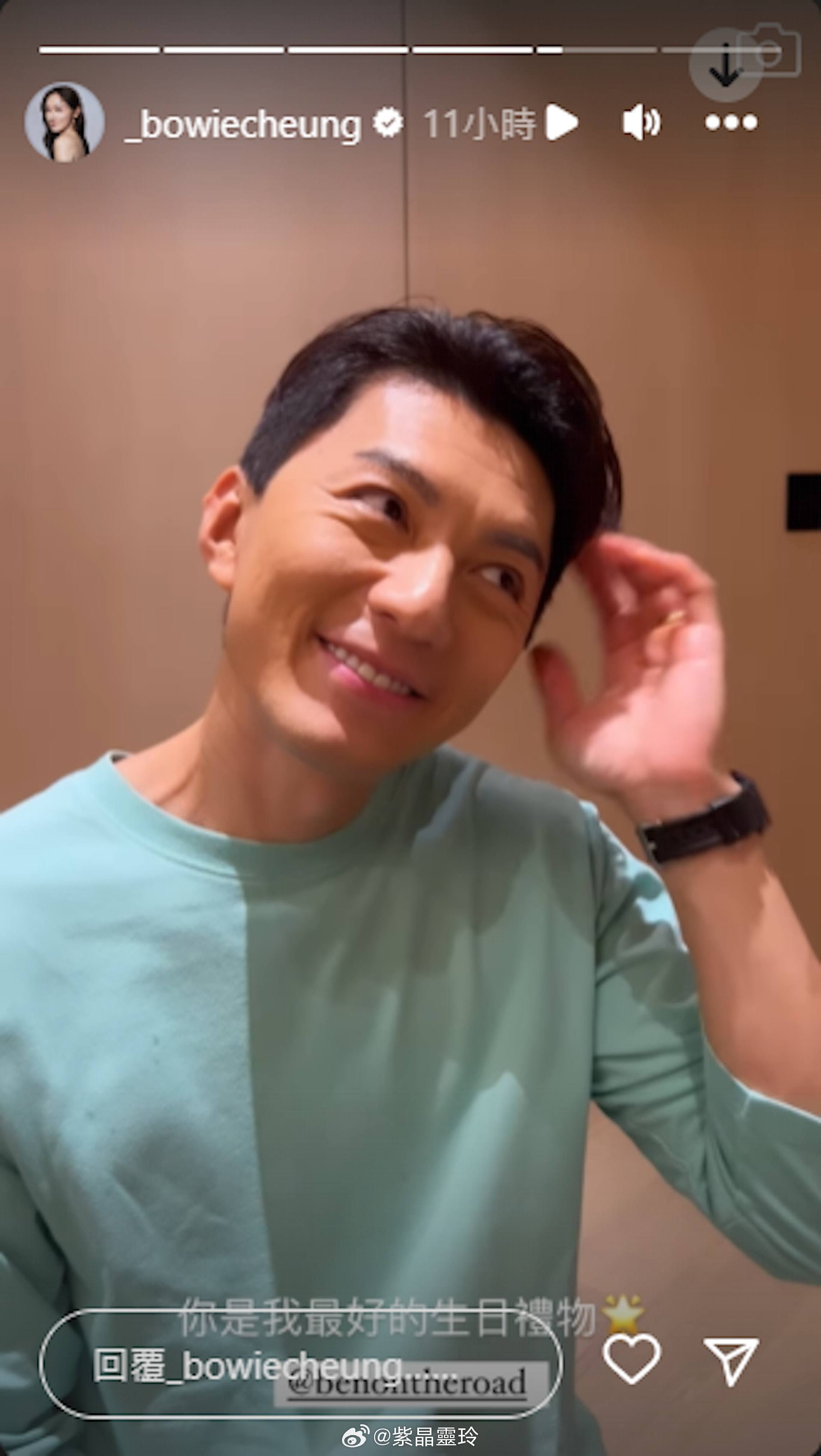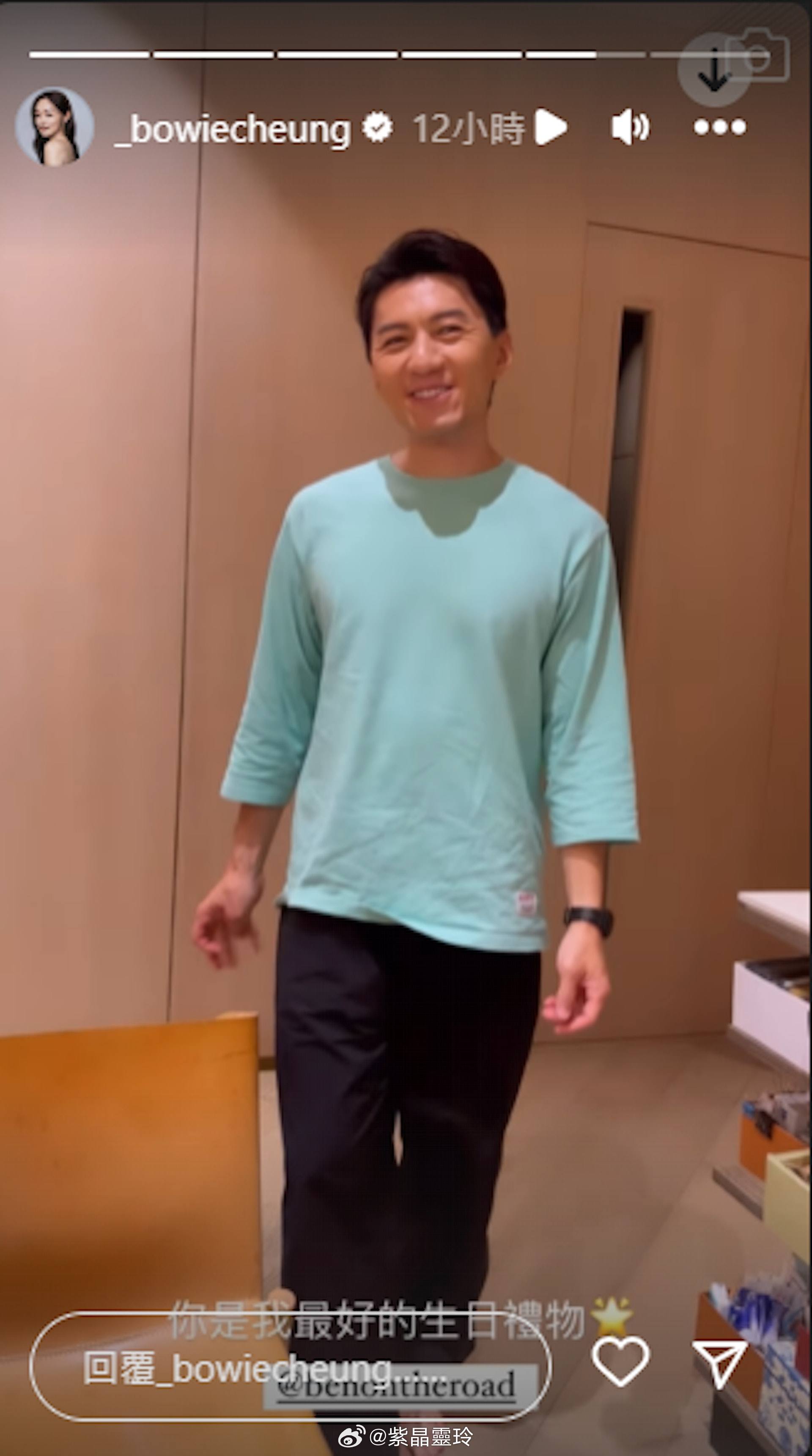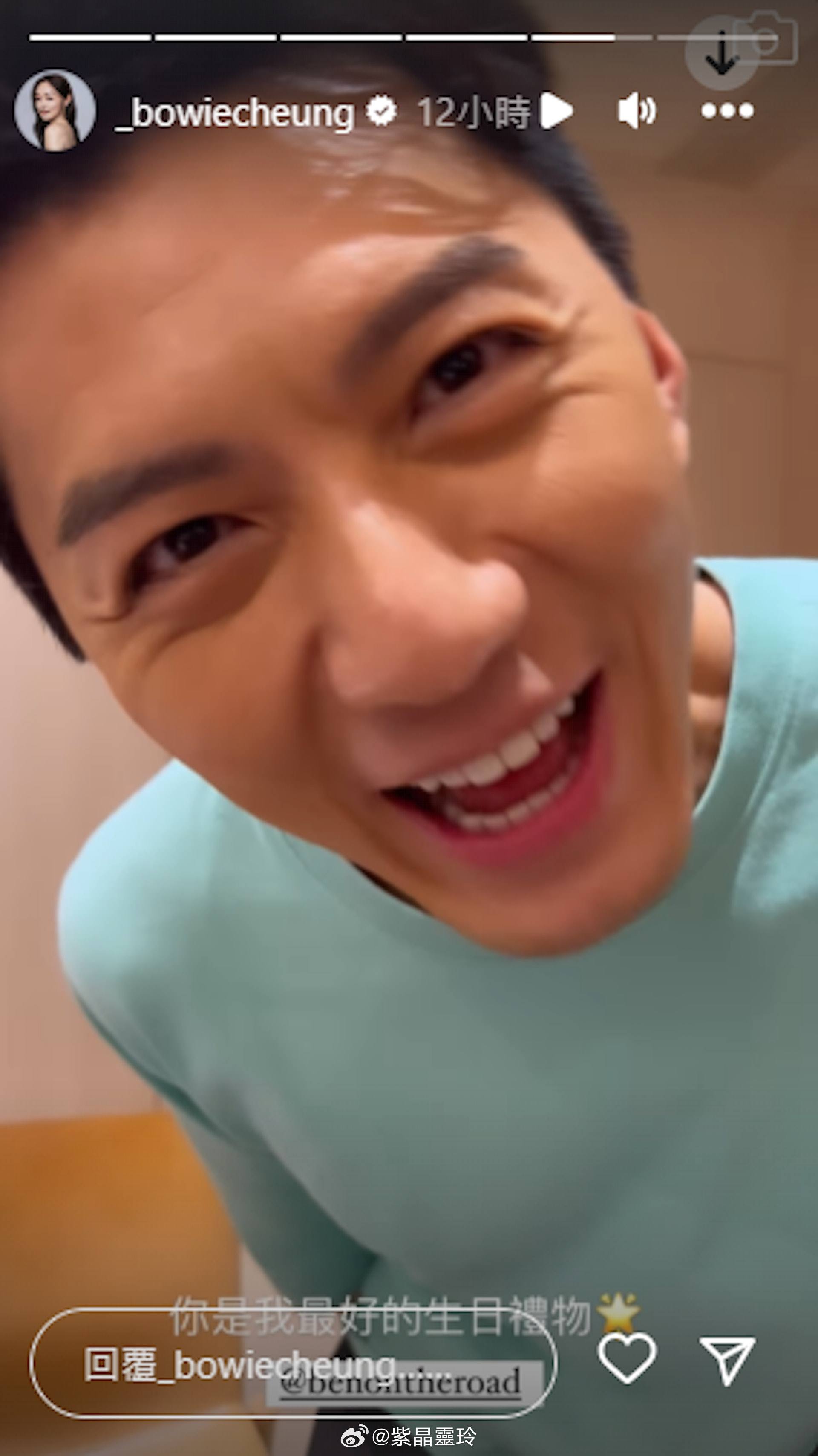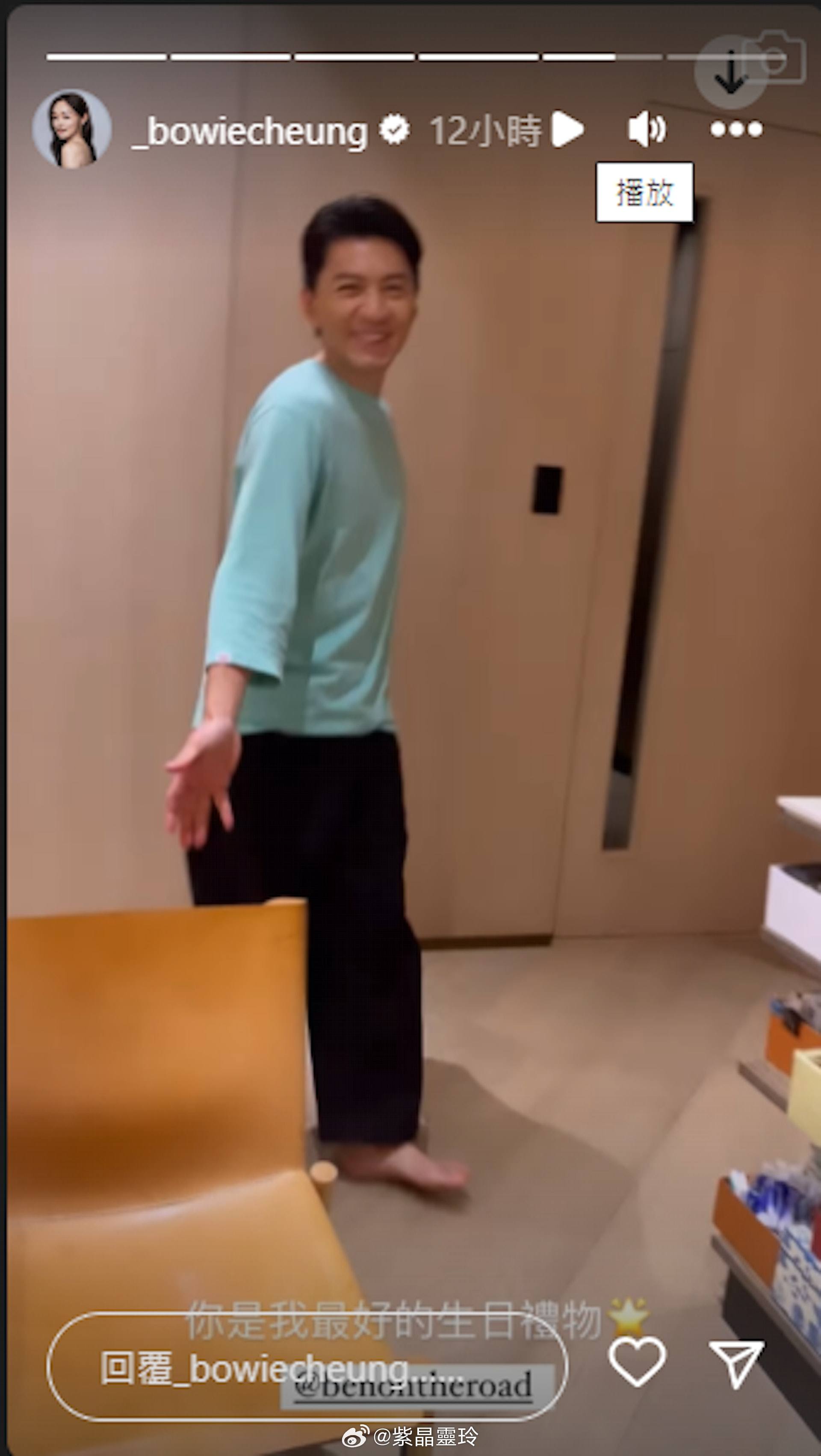 這個人明明要在深圳連續開工五天,剛才突然出現家中!還要在大門外facetime我,見證我奇怪為何這麼晚有人來我,這個驚喜的確很開心。原本以為這個生日,你和爸媽都分別出外公幹了,我會在家好好和袁咕碌過二人世界,在心裡為家人們的專注奮鬥感到開心興奮~ 誰知道⋯⋯ 你和袁寶寶都在,是我最好的生日禮物。」袁偉豪人肉速遞回港,令太太甜入心。(IG@_bowiecheung)袁偉豪絕對是好老公。(IG@_bowiecheung)之後張寶兒再分享一段限時動態,她問老公袁偉豪明明在深圳開工,點解會突然出現在她面前?袁偉豪得戚地說:「係呀,我同導演講我唔拍了,我話我今日唔拍了,我要返去陪我老婆過生日,係咁先。」張寶兒笑言:「好似好勁咁喎,老婆生日大晒。」𠱁得壽星女非常開心。袁偉豪講笑老婆生日,戲都不拍了。(IG@_bowiecheung)非常風騷。(IG@_bowiecheung)還𠱁得壽星女非常開心。(IG@_bowiecheung)袁伟豪张宝儿