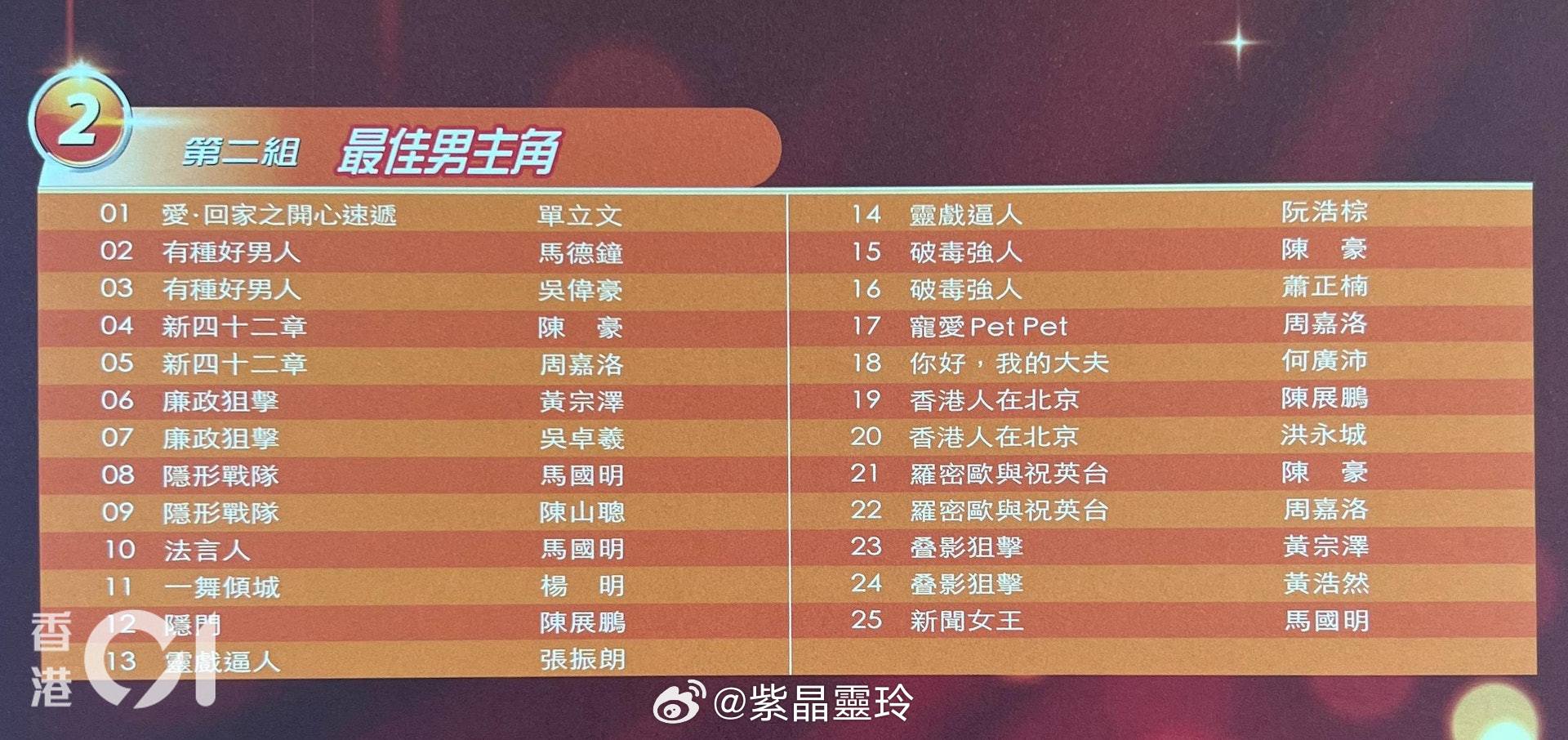 萬千星輝2023|分析視帝大亂局 黃宗澤成黑馬力撼陳豪馬國明《萬千星輝頒獎典禮2023》昨日公布了各獎項的提名名單,視后方面已分析了佘詩曼勝率極高,那麼視帝呢?今年絕對有大亂鬥的味道。萬千星輝2023|詳細分析視后走勢 能夠打低佘詩曼只有佢自己?視帝提名名單。(資料圖片)先講一些陪跑份子,由於劇集在今年沒有太出色的表現,有幾位人兄基本上第一輪便會被淘汰,包括單立文、馬德鐘、吳偉豪、楊明、何廣沛、張振朗和阮浩棕,有時要奪獎,除了要有好演技,還需天時地利地配合,今次未得下年再來過。陳豪今年三套劇入圍,氣勢夠強。(劇集截圖)至於中間游離份子,例如有三套劇入圍的周嘉洛,實力已經是上升期,不過講到要攞視帝仲同其他前輩有段距離,雖然他曾豪言萬丈要破古天樂最年輕視帝的紀錄,但今年看來沒有機會。蕭正楠在《破毒強人》中未夠陳豪搶鏡,黃浩然多年來都未能打入TVB頒獎圈,吳卓羲也想不到理由要頒獎給他。馬國明都唔係冇機會。(梁碧玲攝)所以講到最後五強,將會是陳展鵬、陳山聰、馬國明、陳豪和黃宗澤,這個3陳1黃馬的爭奪戰,但前兩人今年聲勢不夠大,雖然陳展鵬在《香港人在北京》獲得不少內地網民讚賞,但在香港收視始終一般,而陳山聰主演的《隱形戰隊》由於過往太多類近題材,搶鏡程度甚至不及他在《新聞女王》最後幾集的出場,而比起他上年奪得視帟《金宵大廈2》,就知道今年奪獎機會比較細。唔通黃宗澤真係有機會?(小紅書截圖)馬國明和陳豪今年都發揮出色,兩人分別主演的《隱形戰隊》和《破毒強人》都打入本年收視榜的頭三位,同時亦是憑三套劇集入圍,本來今年視帝只是他們兩人之爭。不過,近來發現要重新評估黃宗澤這位黑馬,事關他在《新聞女王》最後一幕出場,明顯為第二輯埋下伏筆,如果今年他奪得視帝,下年第二輯肯定聲勢浩大,加上他多年在TVB已積累了一班粉絲,他奪獎肯定有人力撐,隨時爆一個小冷門!